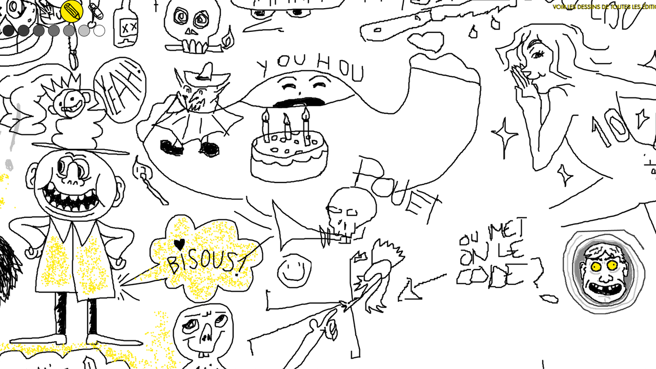 The idea behind Zinternet is a white page on which all visitors to the site can draw. The drawings produced by visitors are also posted on the Tumblr (external link) of the project. These drawings are then published as a fanzine available at a free price supporting the Zinefest festival.